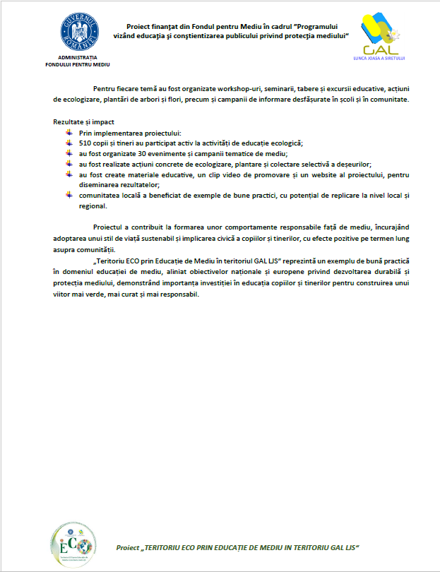 TERITORIU ECO PRIN EDUCAȚIE DE MEDIU ÎN TERITORIU GAL LJS