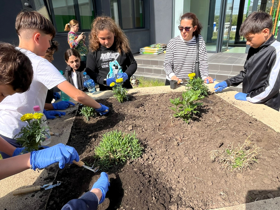 Cu mâinile în pământ și zâmbete largi, copiii au continuat misiunea de înfrumusețare a comunității, plantând flori prietenoase cu albinele și pomi fructiferi în spații verzi din Smârdan și din alte localități din teritoriul GAL.