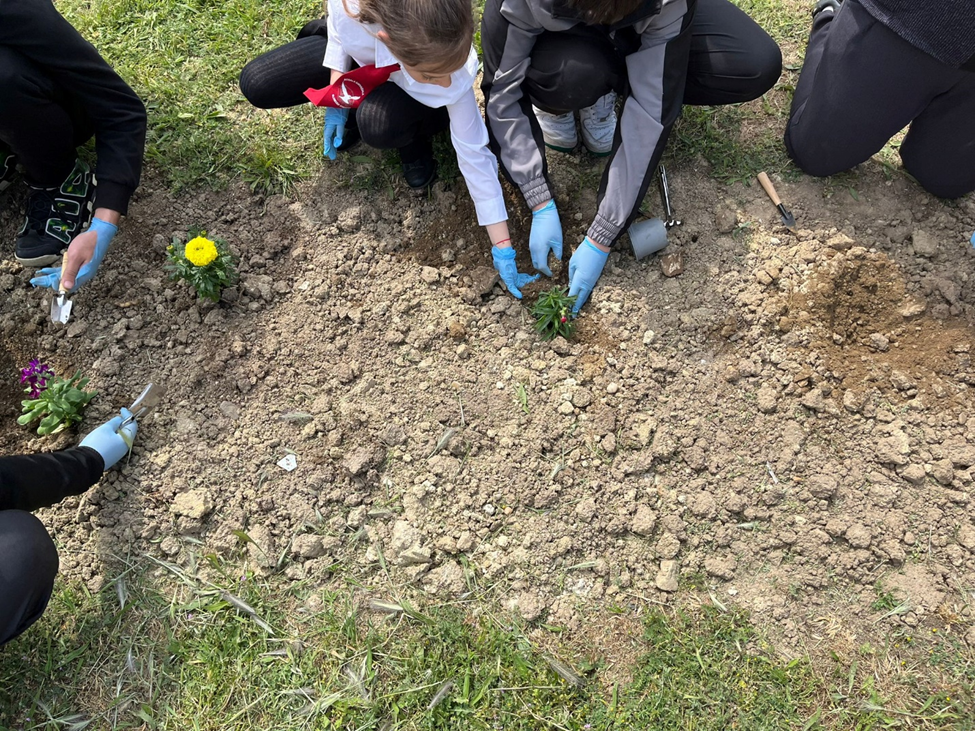Cu mâinile în pământ și zâmbete largi, copiii au plantat flori în grădina școlii, contribuind activ la un mediu mai frumos și mai sănătos. Am discutat despre importanța protejării naturii și despre cum fiecare floare poate deveni o sursă de hrană pentru o albină sau un fluture.